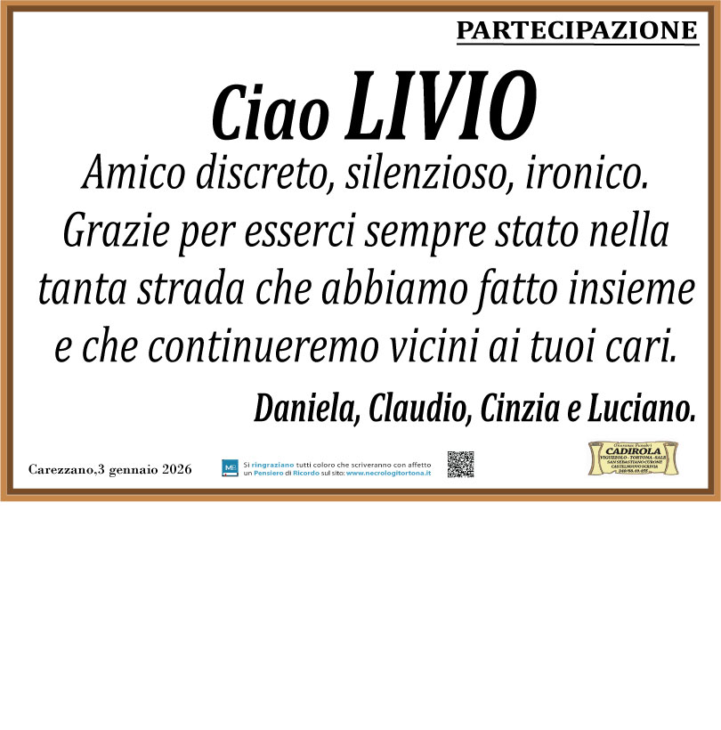 I familiari ringraziano anticipatamente tutti coloro che parteciperanno alla cerimonia funebre