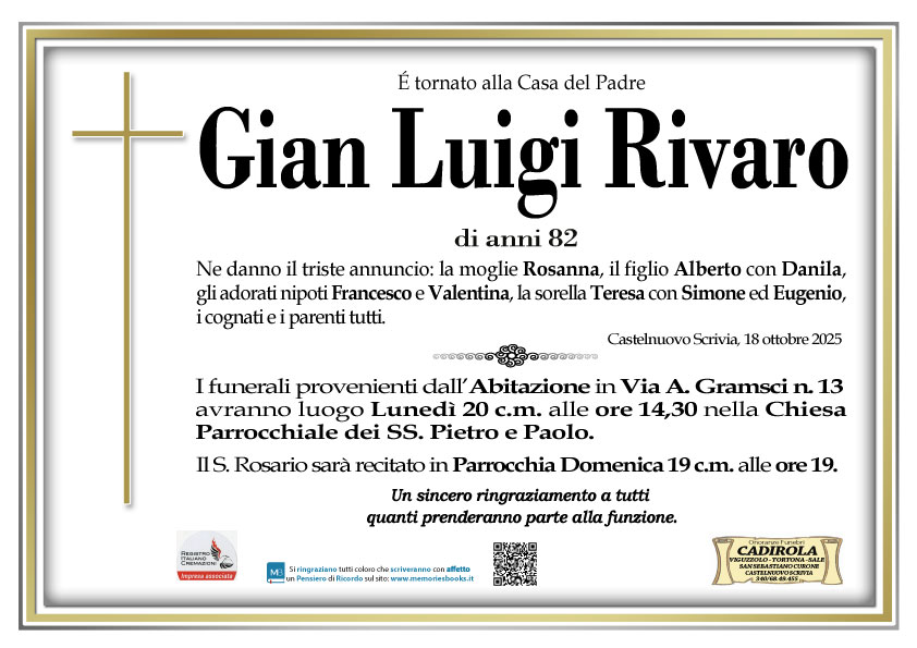 I familiari ringraziano anticipatamente tutti coloro che parteciperanno alla cerimonia funebre