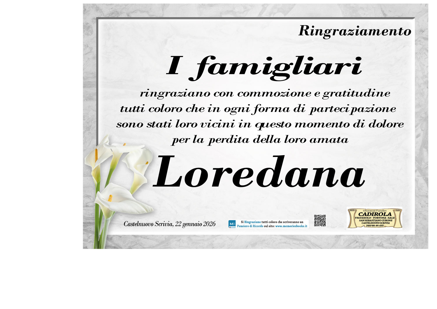 I familiari ringraziano anticipatamente tutti coloro che parteciperanno alla cerimonia funebre