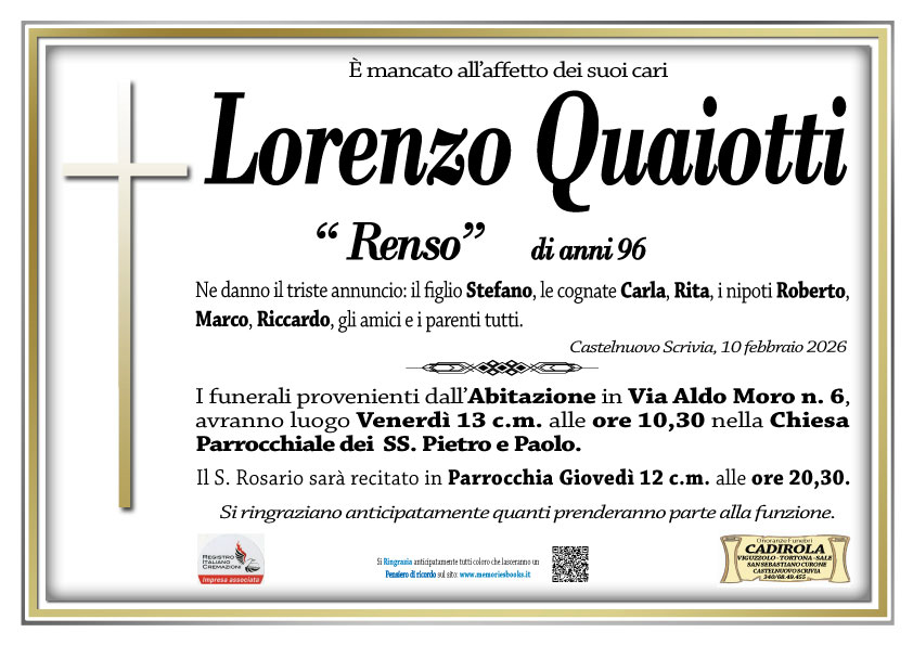 I familiari ringraziano anticipatamente tutti coloro che parteciperanno alla cerimonia funebre