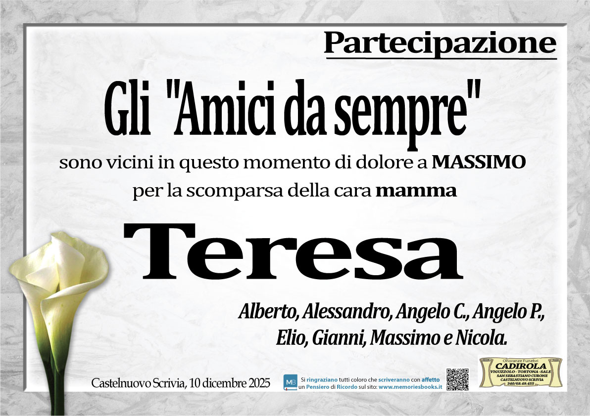 Nel ricordo della cara Teresa esprimo le mie più sentite condoglianze a Massimo e Michela