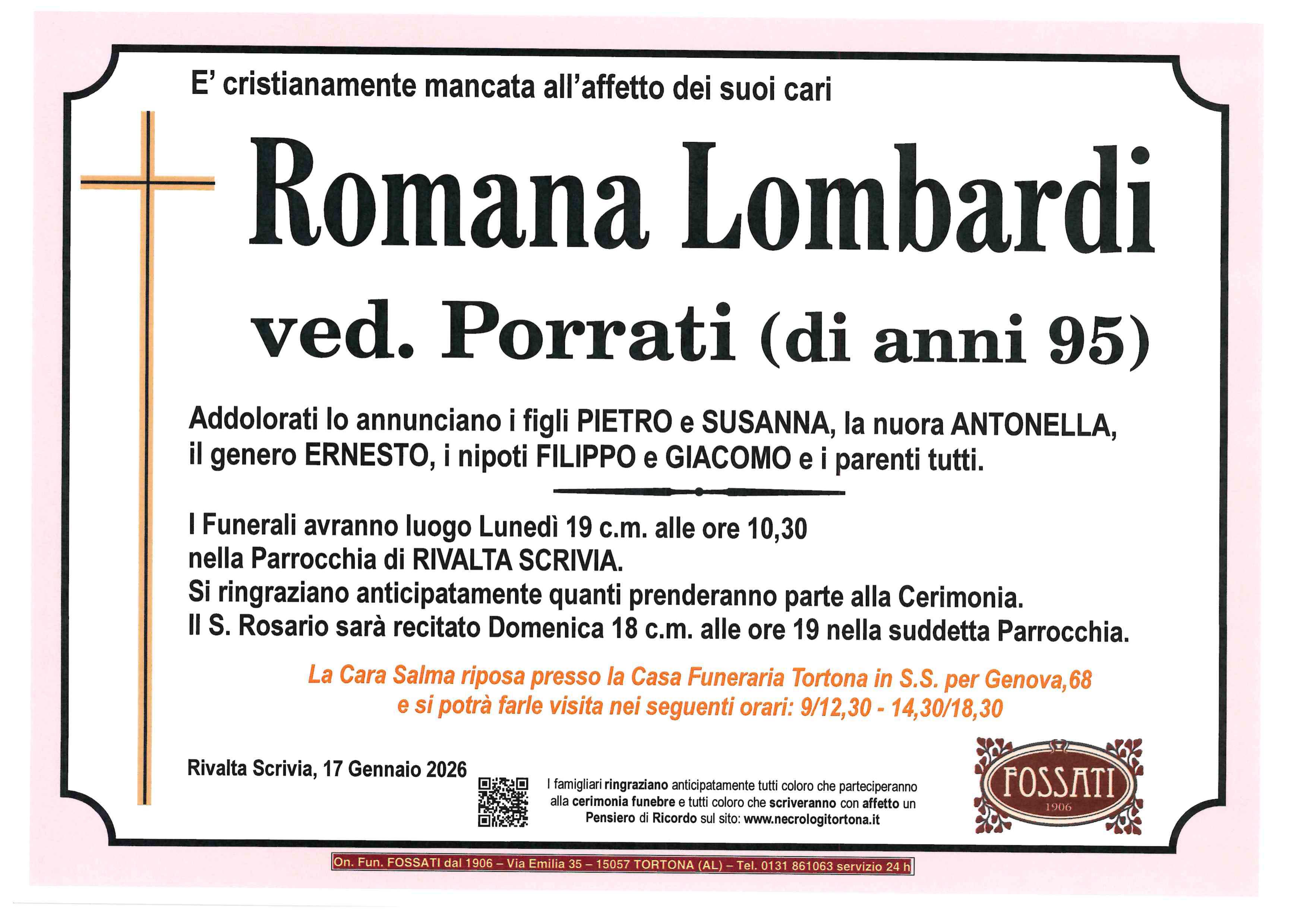I familiari ringraziano anticipatamente tutti coloro che parteciperanno alla cerimonia funebre