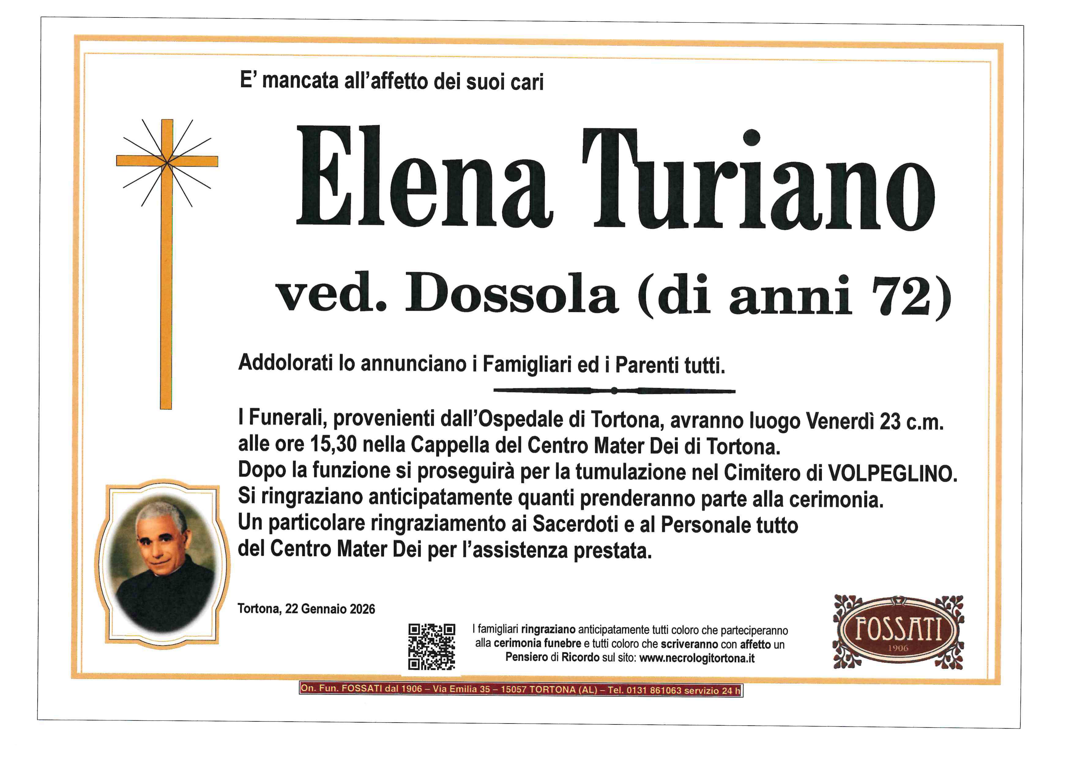 I familiari ringraziano anticipatamente tutti coloro che parteciperanno alla cerimonia funebre