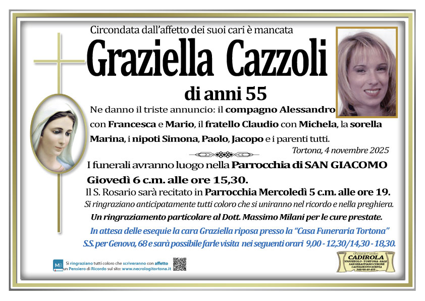 Ciao Graziella, ora sei un bellissimo angelo e vegli sopra la tua bellissima famiglia che lasci troppo presto!!! Un abbraccio grandissimo vi sono vicina con il cuore!!!! Le mie più sentite condoglianze!!!! Giovanna e tutta la mia famiglia!!!