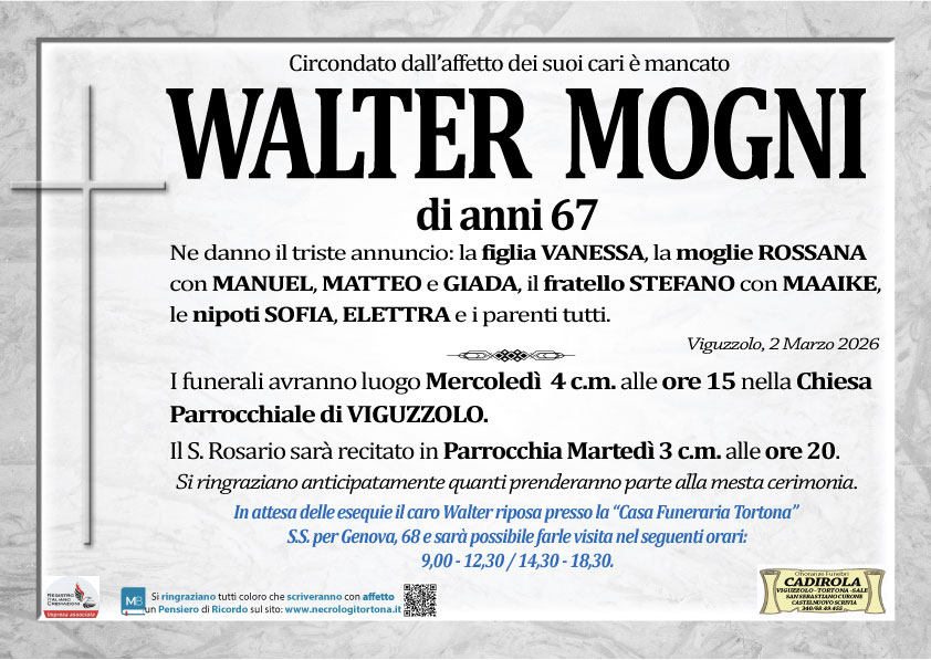 I familiari ringraziano anticipatamente tutti coloro che parteciperanno alla cerimonia funebre