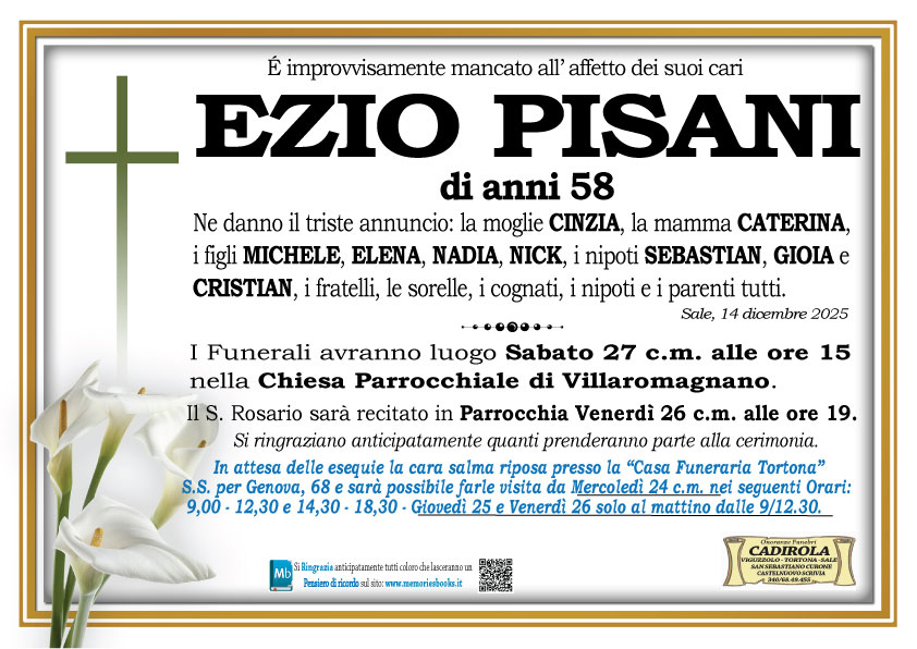 I familiari ringraziano anticipatamente tutti coloro che parteciperanno alla cerimonia funebre